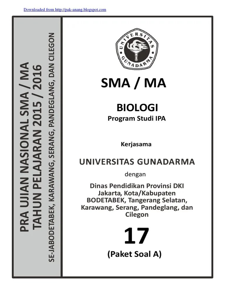 Dalam postingan kali ini hanya menyediakan link menuju soal ujian nasioanal maupun sbmptn , osn guru dan juga pembahasan ujian nasional smp sma dan smk saya . Soal un biologi sma 2017 dan pembahasannya pdf ilmusosial id . Ipa biologi selasa 5 april 2016 1030 1230 balitbang pak anang . Pembahasan soal ujian nasional tahun pelajaran 2009/2010 biologi sma distributed by: Pembahasan soal un biologi sma tahun 2018 blog pak pandani.